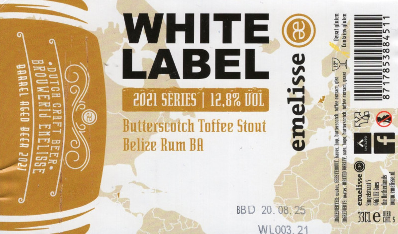 | Biernaam op etiket | White Label Butterscotch Toffee Stout Belize Rum BA |