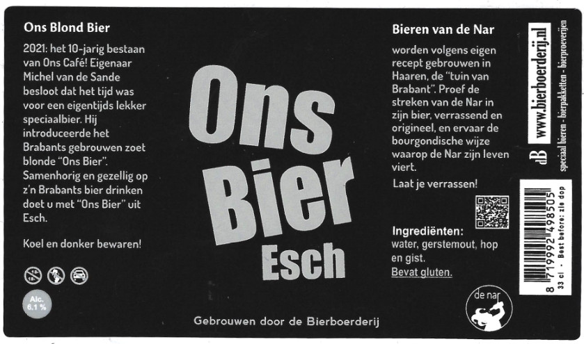 | Biernaam op etiket | Ons Bier |