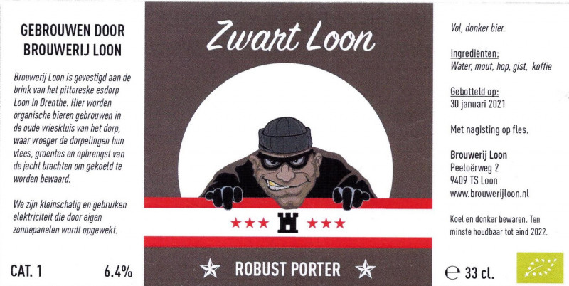 | Biernaam op etiket | Zwart Loon Robust Porter |