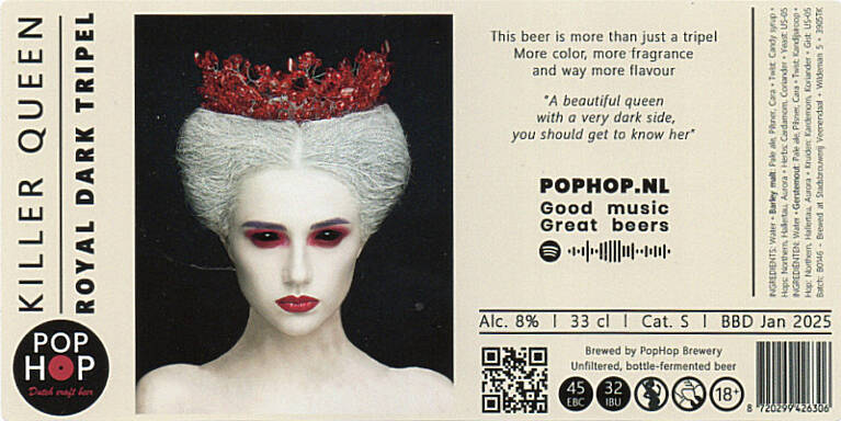 | Biernaam op etiket | Killer Queen Royal Dark Tripel |