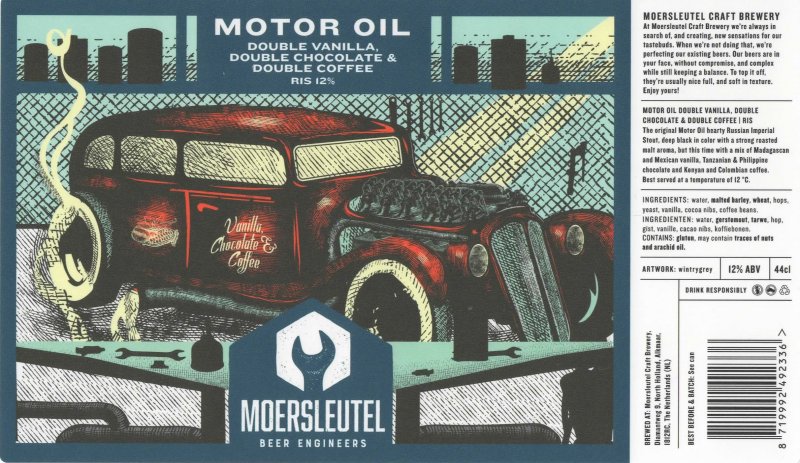 | Biernaam op etiket | Motor Oil Double Vanilla Double Chocolate & Double Coffee |