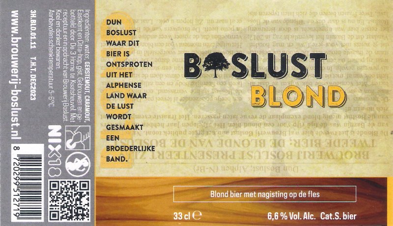 | Biernaam op etiket | Blond |