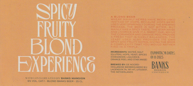 | Biernaam op etiket | Spicy Fruity Blond Experience |