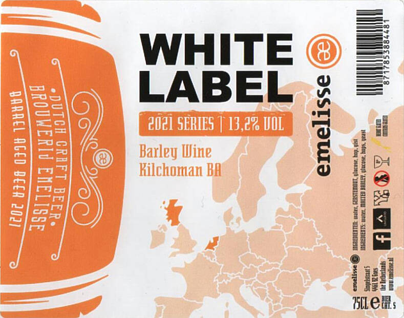 | Biernaam op etiket | White Label Barley Wine Kilchoman BA |