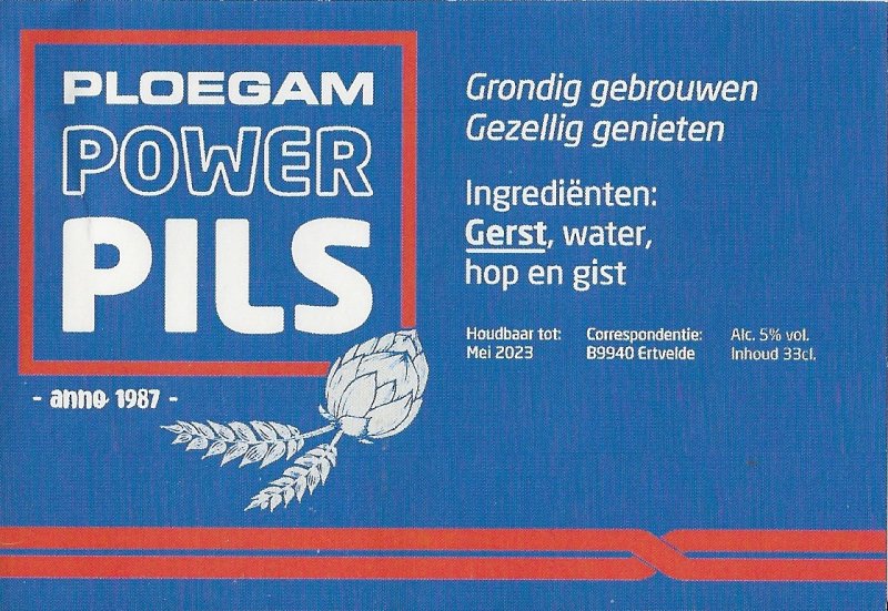 | Biernaam op etiket | Ploegam Power Pils |