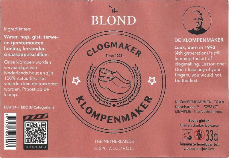 | Biernaam op etiket | Clogmaker Blond |