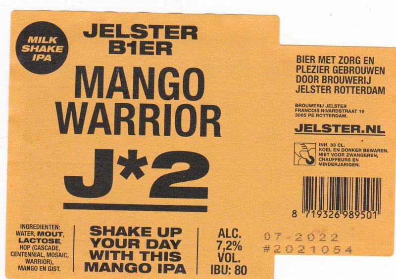| Biernaam op etiket | Mango Warrior Milk Shake IPA J*2 |