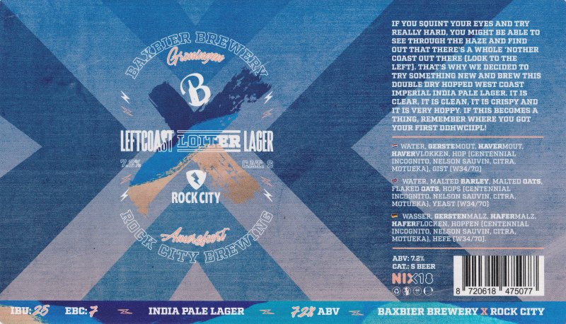 | Biernaam op etiket | Left Coast Loiter Lager |