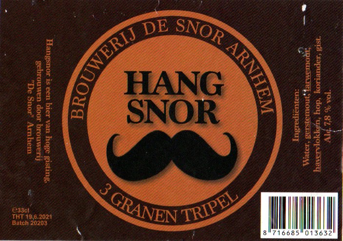 | Biernaam op etiket | Hang Snor 3 Granen Tripel |