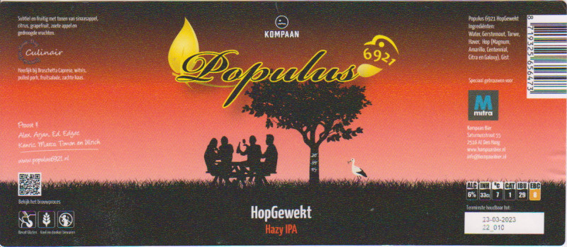 | Biernaam op etiket | Populus 6921 Hopgewekt Hazy IPA |