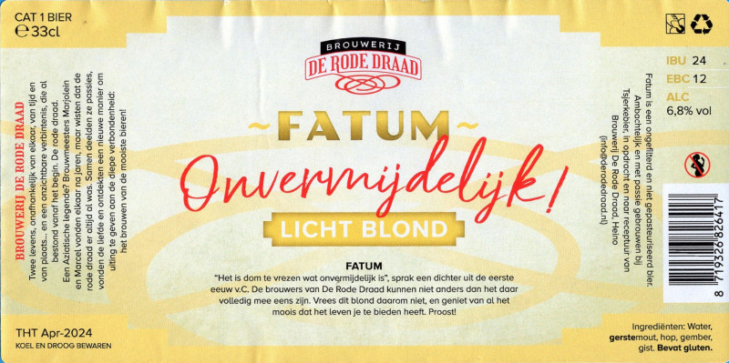 | Biernaam op etiket | Fatum Onvermijdelijk! Licht Blond |
