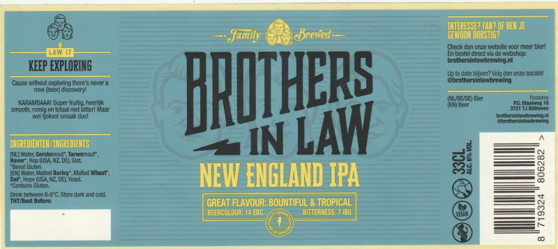 | Brouwerij | Brothers In Law Brewing |