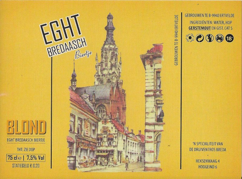 | Biernaam op etiket | Eght Bredaasch Biertje Blond |