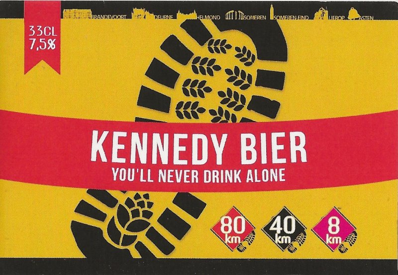 | Biernaam op etiket | Kennedy Bier You'll never drink alone |