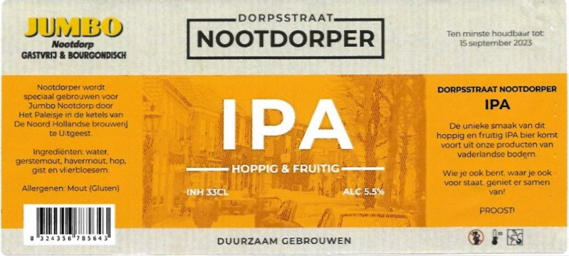 | Biernaam op etiket | Dorpsstraat Nootdorper IPA |