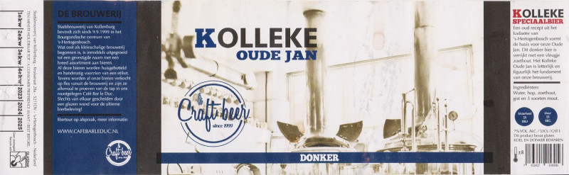 | Biernaam op etiket | Kolleke Oude Jan Donker |