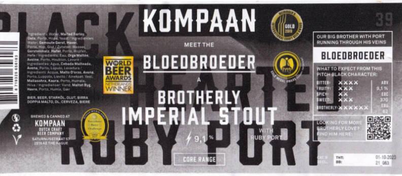 | Biernaam op etiket | Bloedbroeder Brotherly Imperial Stout |