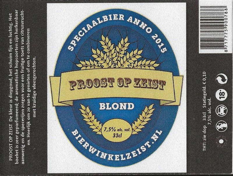 | Biernaam op etiket | Proost op Zeist Blond |