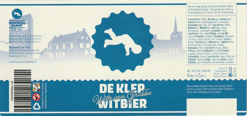 | Biernaam op etiket | Witte van Grubbe Witbier |