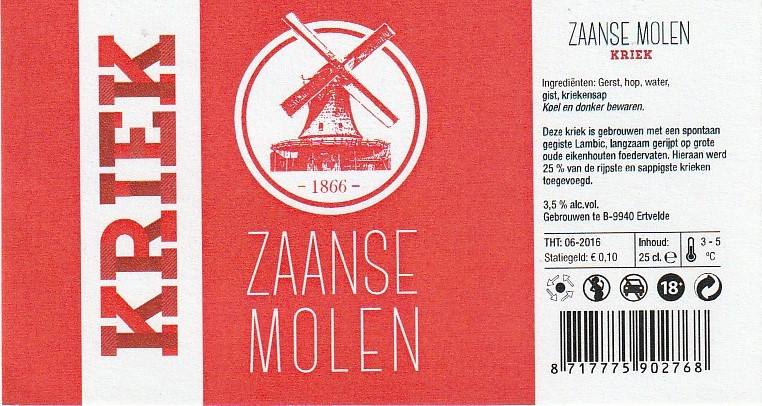 | Biernaam op etiket | Zaanse Molen Kriek |
