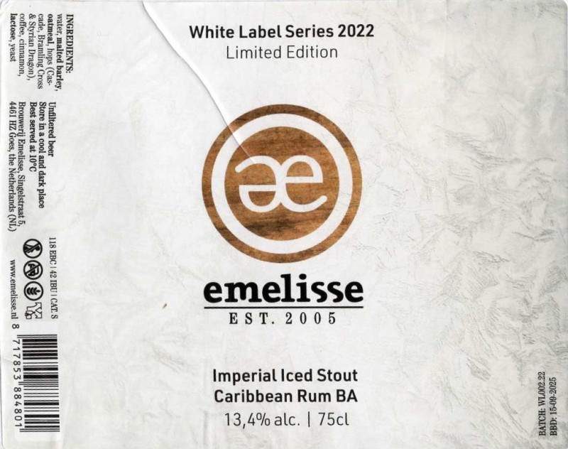 | Biernaam op etiket | White Label Imperial Iced Stout Caribbean Rum BA |