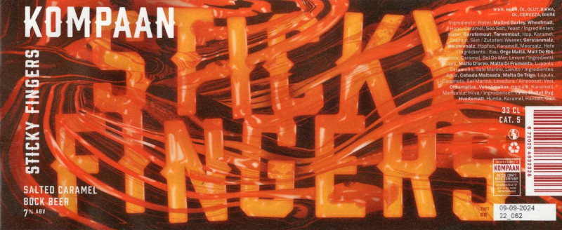 | Biernaam op etiket | Sticky Fingers Salty Caramel Bock Beer |