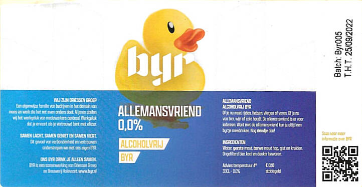 | Biernaam op etiket | BYR Allemansvriend Alcoholvrij BYR |