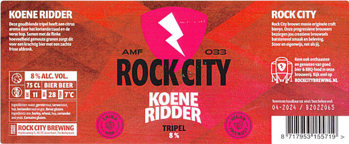 | Biernaam op etiket | Koene Ridder Tripel |