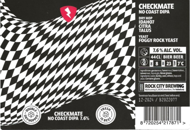 | Biernaam op etiket | Checkmate No Coast DIPA |