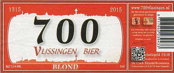 | Biernaam op etiket | 700 Vlissingen Bier Blond |