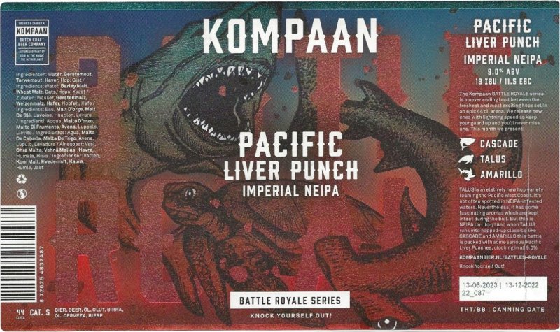 | Biernaam op etiket | Pacific Liver Punch Imperial NEIPA |