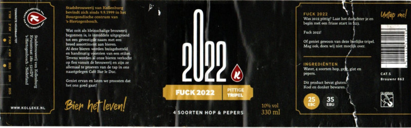 | Biernaam op etiket | 2022 - Fuck 2022 Pittige Tripel |