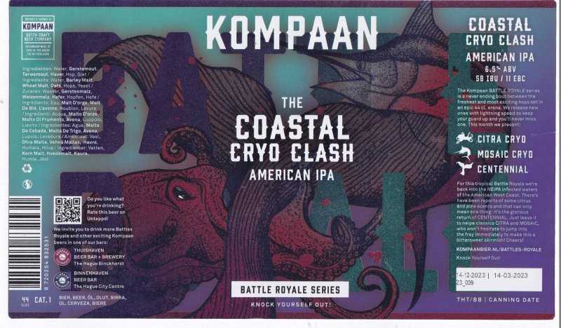| Biernaam op etiket | The Coastal Cryo Clash American IPA |