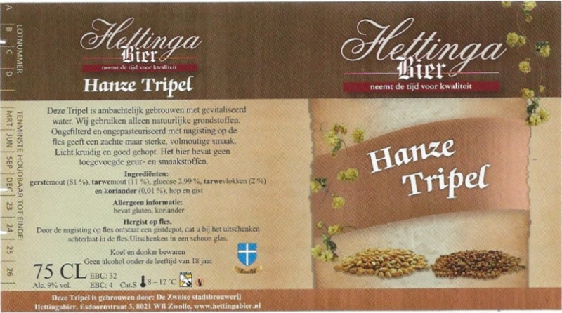| Brouwerij | De Zwolse Stadsbrouwerij Hettingabier |