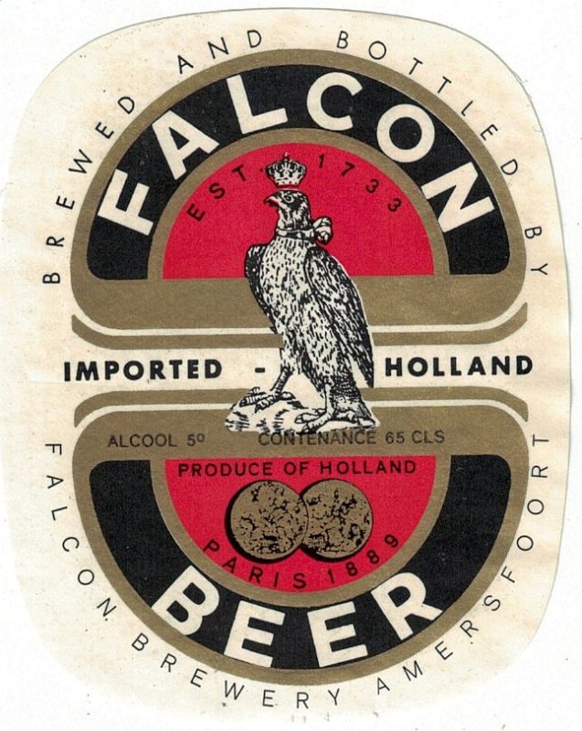 | Omschrijving | opdruk  alcool 5° contenance 65 cls Falcon Brewery Amersfoort |