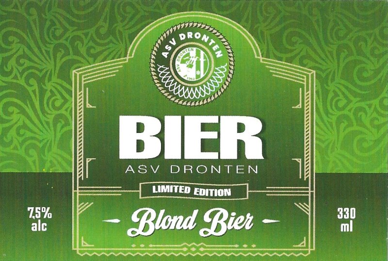 | Biernaam op etiket | ASV Dronten Bier Blond Bier |