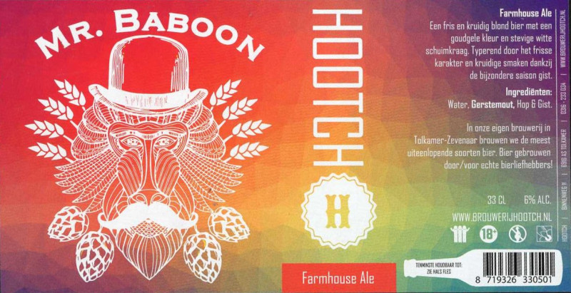| Biernaam op etiket | Mr. Baboon Farmhouse Ale |
