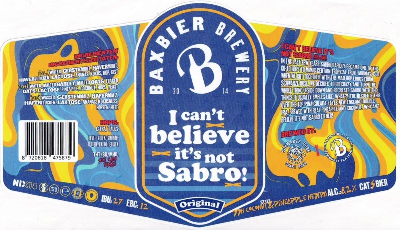 | Biernaam op etiket | I Can't believe it's not Sabro! |