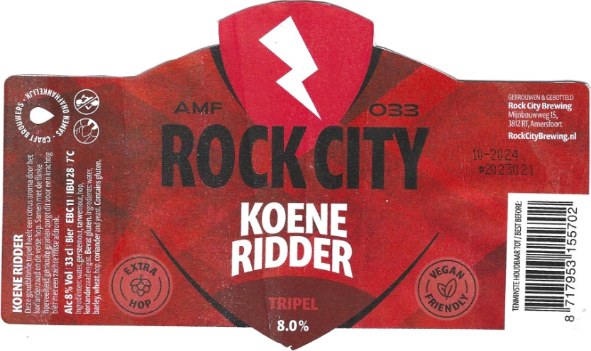 | Biernaam op etiket | Koene Ridder Tripel |