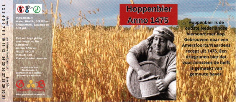| Biernaam op etiket | Hoppenbier Anno 1475 |