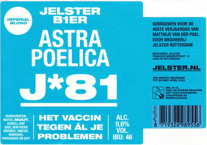 | Biernaam op etiket | Astra Poelica J*81 Imperial Blond |