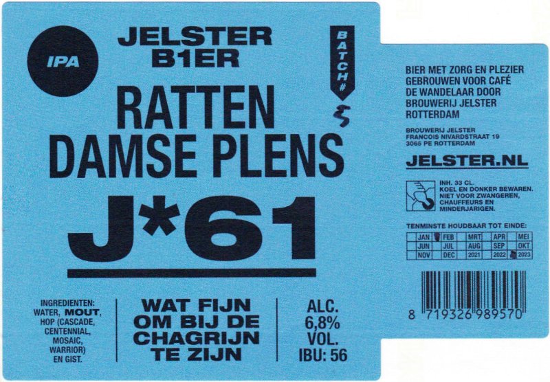 | Biernaam op etiket | Ratten Damse Plens J*61 IPA |