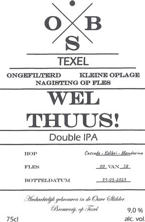 | Biernaam op etiket | Wel Thuus! Double IPA |