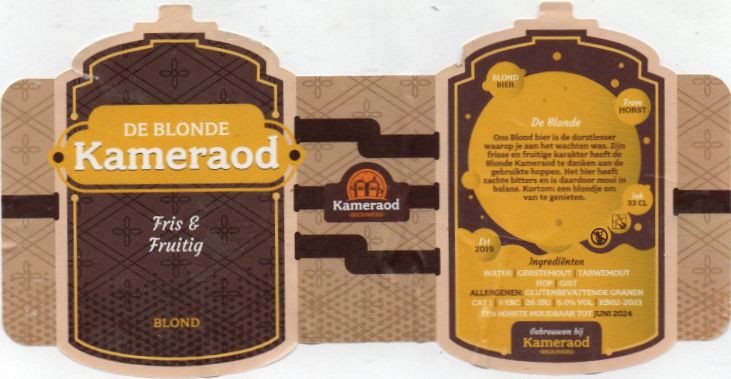 | Biernaam op etiket | De Blonde Kameraod Blond |