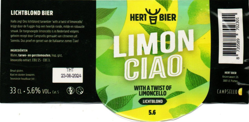 | Biernaam op etiket | Limon Ciao Lichtblond |