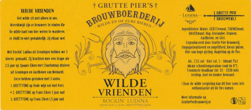 | Biernaam op etiket | Wilde Vrienden Grape Ale 2,5 jaar Bretttûne 3 jaar |
