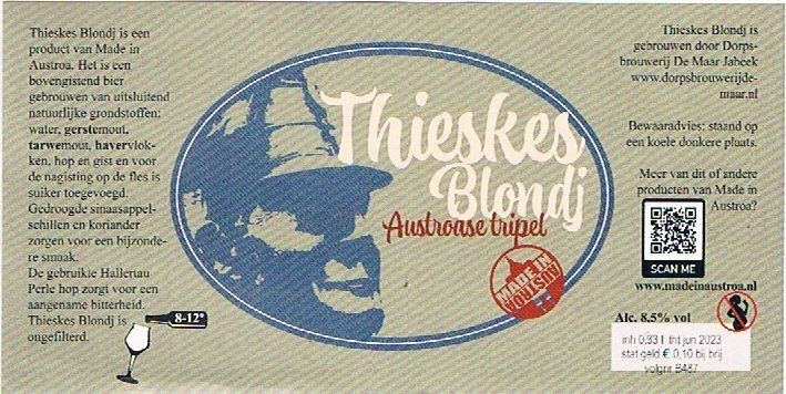 | Biernaam op etiket | Thieskes Blondj Austroase Tripel |