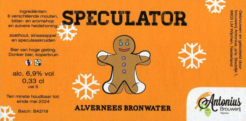 | Biernaam op etiket | Speculator Alvernees Bronwater |