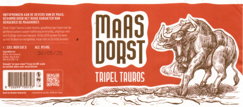| Biernaam op etiket | Maasdorst Tripel Tauros |