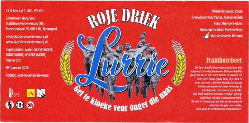| Biernaam op etiket | Lurrie Roje Driek |